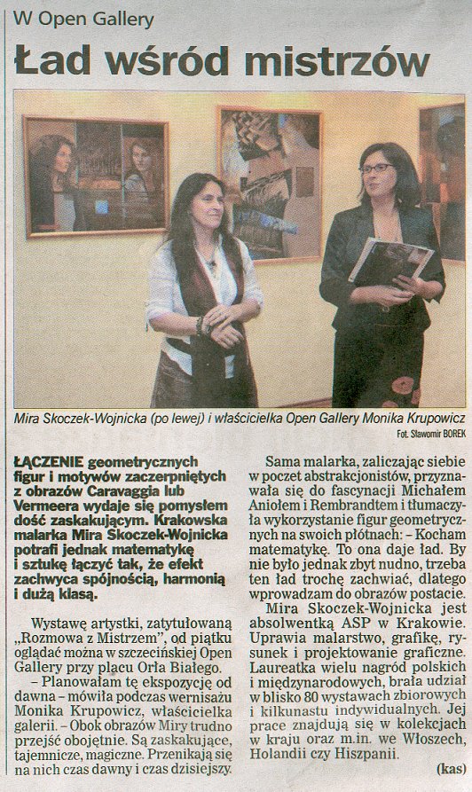 Malarstwo i grafikę uznanej polskiej artsytki Miry Skoczek-Wojnickej zaprezentowano w Open Gallery podczas wystawy pod hasłem „Rozmowa z Mistrzem”.